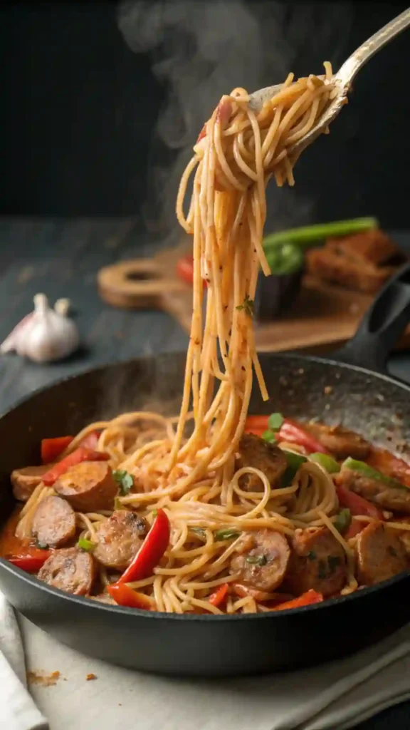 Cajun Sausage Pasta is a quick, spicy, and comforting dish that blends bold Cajun spices with al dente pasta. This recipe uses plant-based sausage alternatives and fresh vegetables to deliver a rich, smoky flavor without pork or alcohol. It’s a versatile meal perfect for weeknights or gatherings.