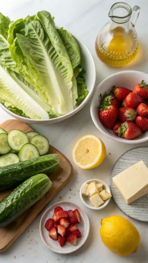 Ingredients of the Strawberry Romaine Salad