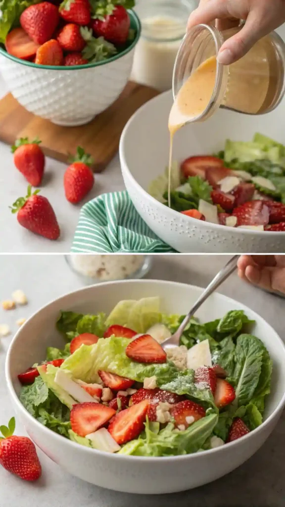 Every bite delivers crunch from the romaine, sweetness from the strawberries, and a subtle richness from the dressing. It’s simple, elegant, and ideal for warm days.