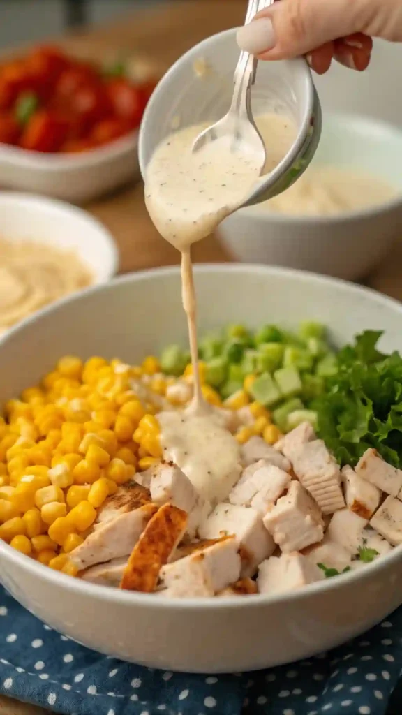 The combination of smoky corn and juicy chicken creates a rich base, while the dressing adds a smooth, tangy finish. It’s filling enough to be a main dish but light enough to enjoy anytime.