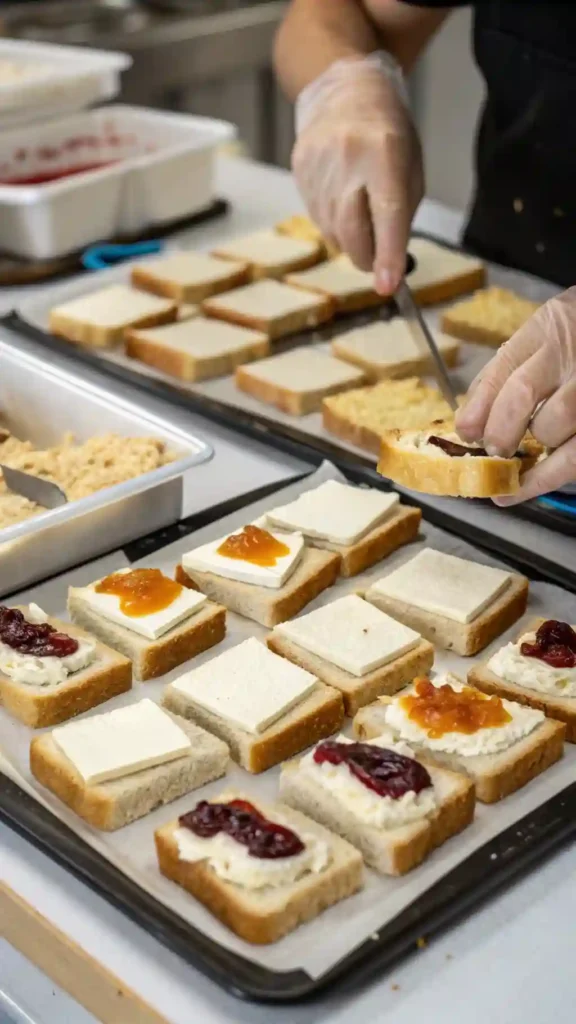 Spread fillings evenly and layer ingredients neatly for a balanced bite.